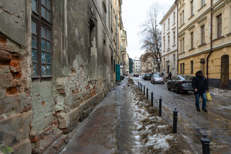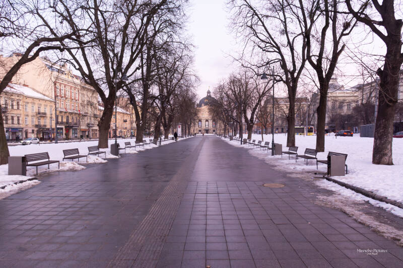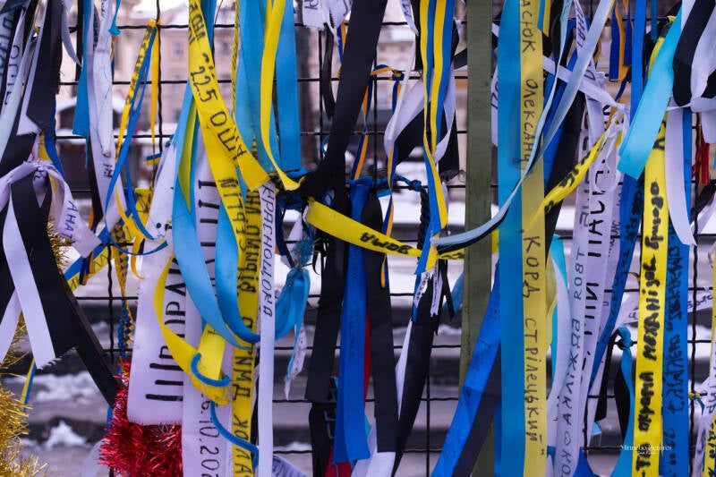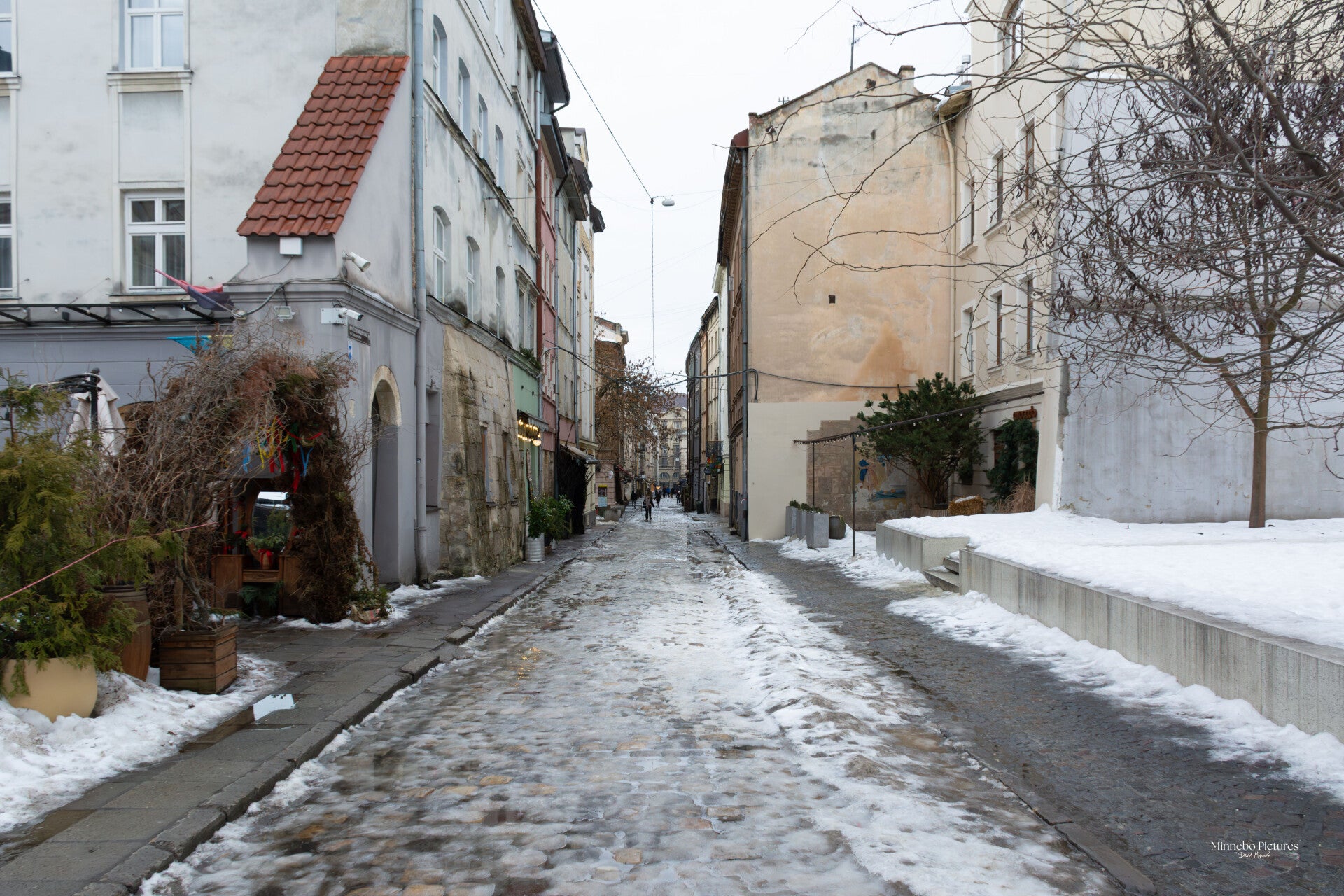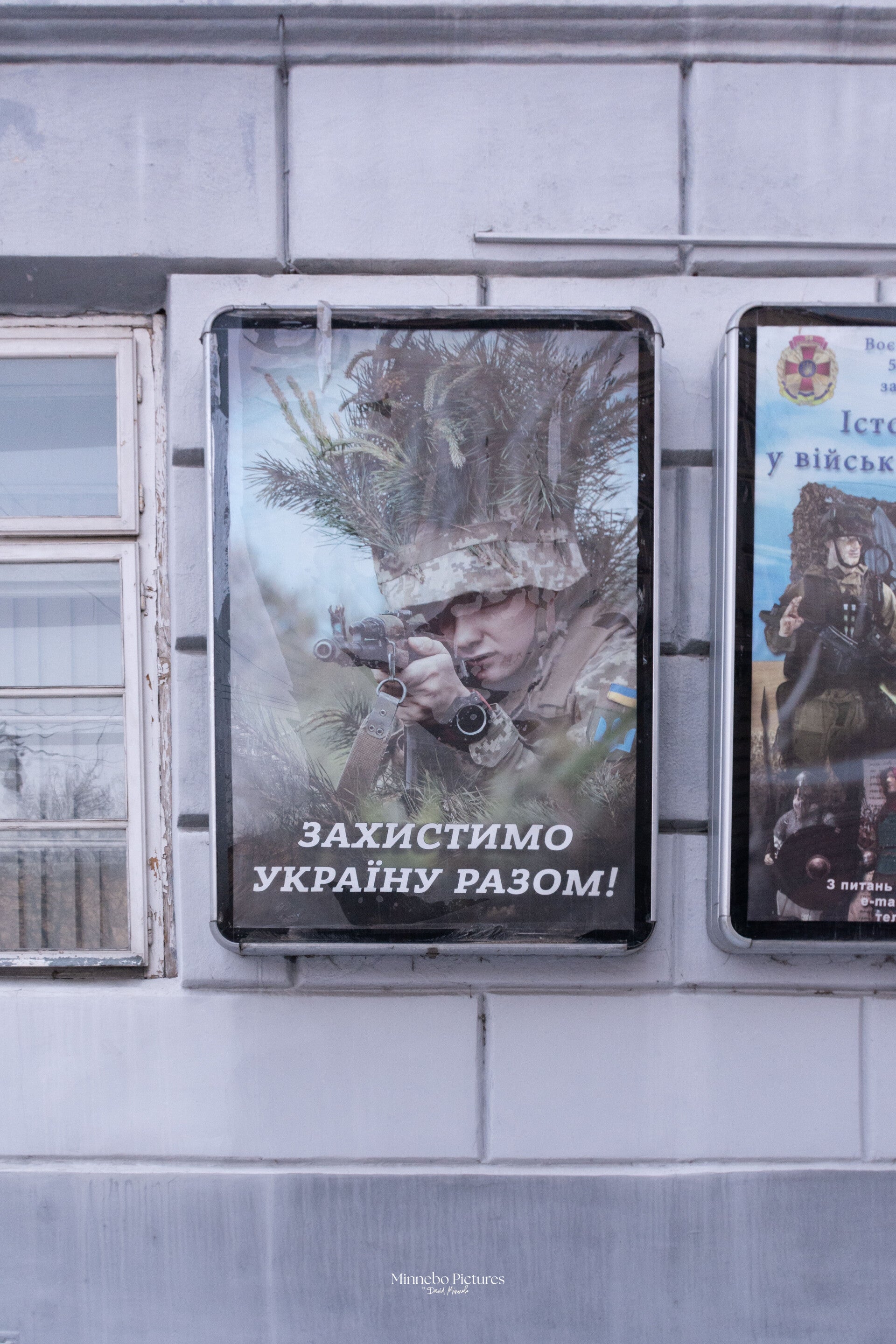 Langs deze straat staan panelen met foto’s van mensen die hun leven verloren in de oorlog. Het is een openluchtmonument dat je niet kunt negeren: een rij gezichten, namen en verhalen die blijven spreken, zelfs in de winterstilte.