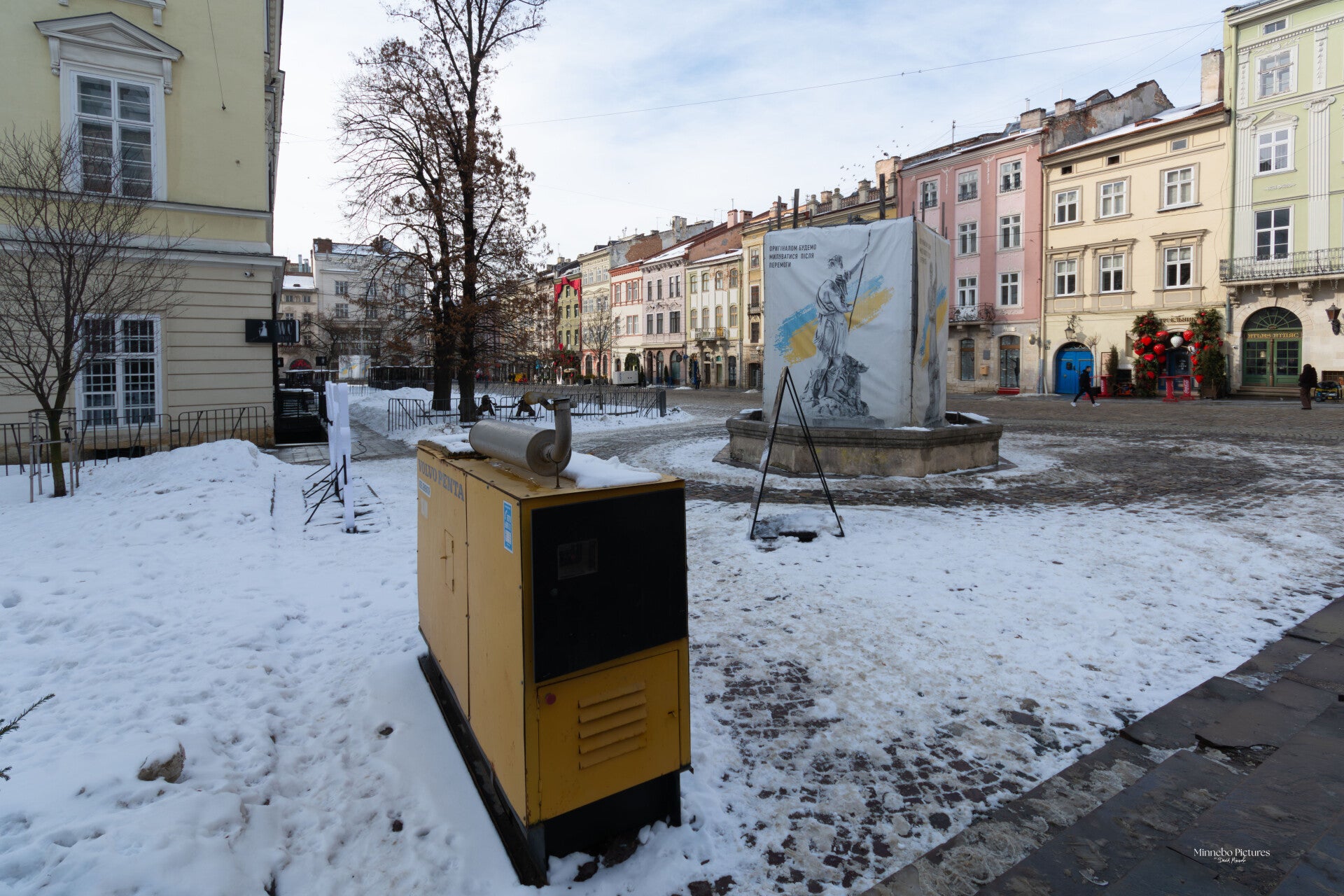 Op verschillende plekken staan generatoren klaar om stroomuitval door de oorlog op te vangen. Ze vormen een noodzakelijke back‑up, zodat winkels, diensten en bewoners niet volledig in het donker vallen wanneer het elektriciteitsnet wordt geraakt. Het zijn kleine machines, maar ze vertellen veel over hoe de stad zich aanpast en blijft functioneren, ondanks alles.
