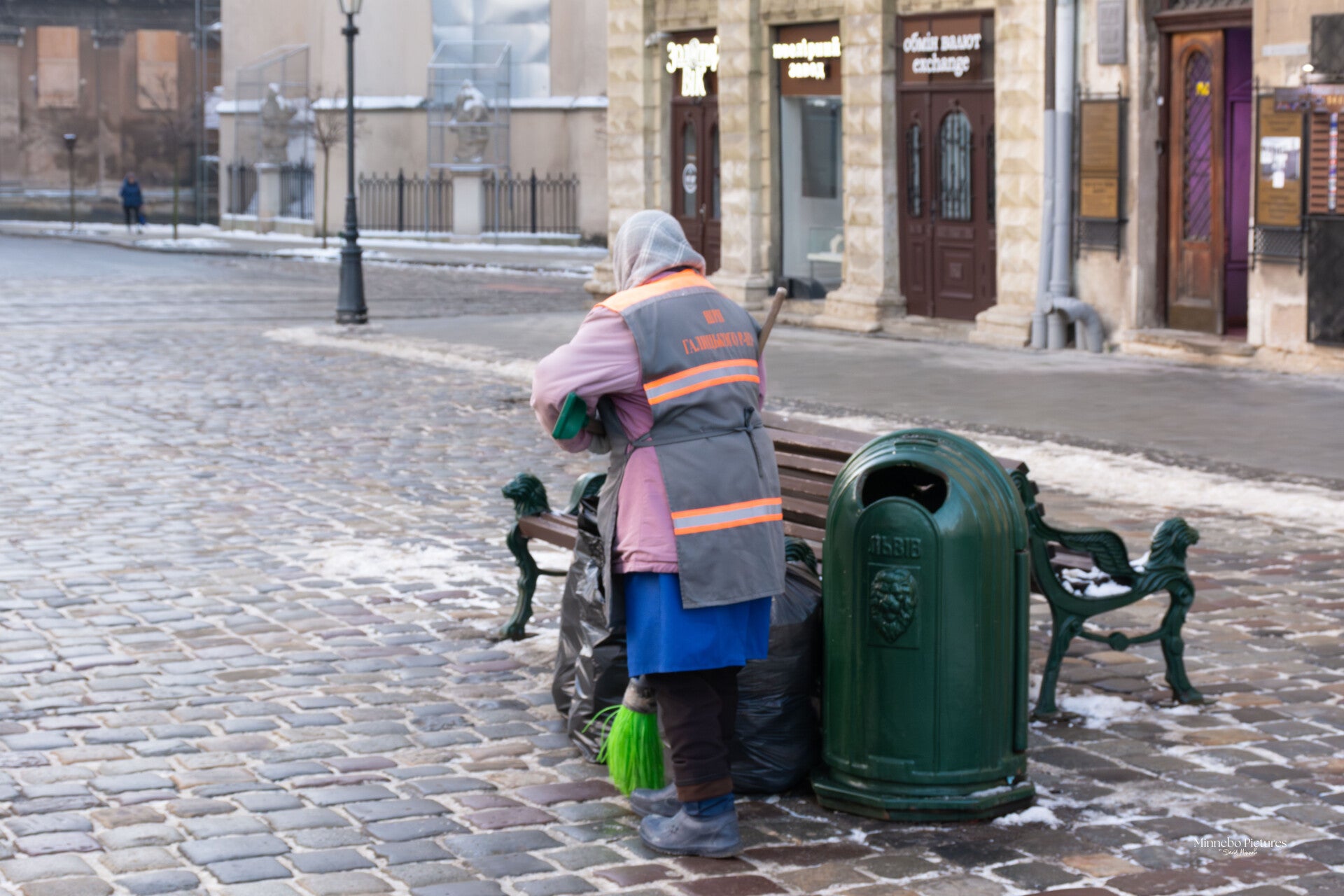 Straatwerkers blijven elke dag de straten schoonhouden, ook wanneer de oorlog alles onzeker maakt. Terwijl mensen voorbijgaan en het leven verdergaat, blijft dit stille, praktische werk een ankerpunt van normaliteit.