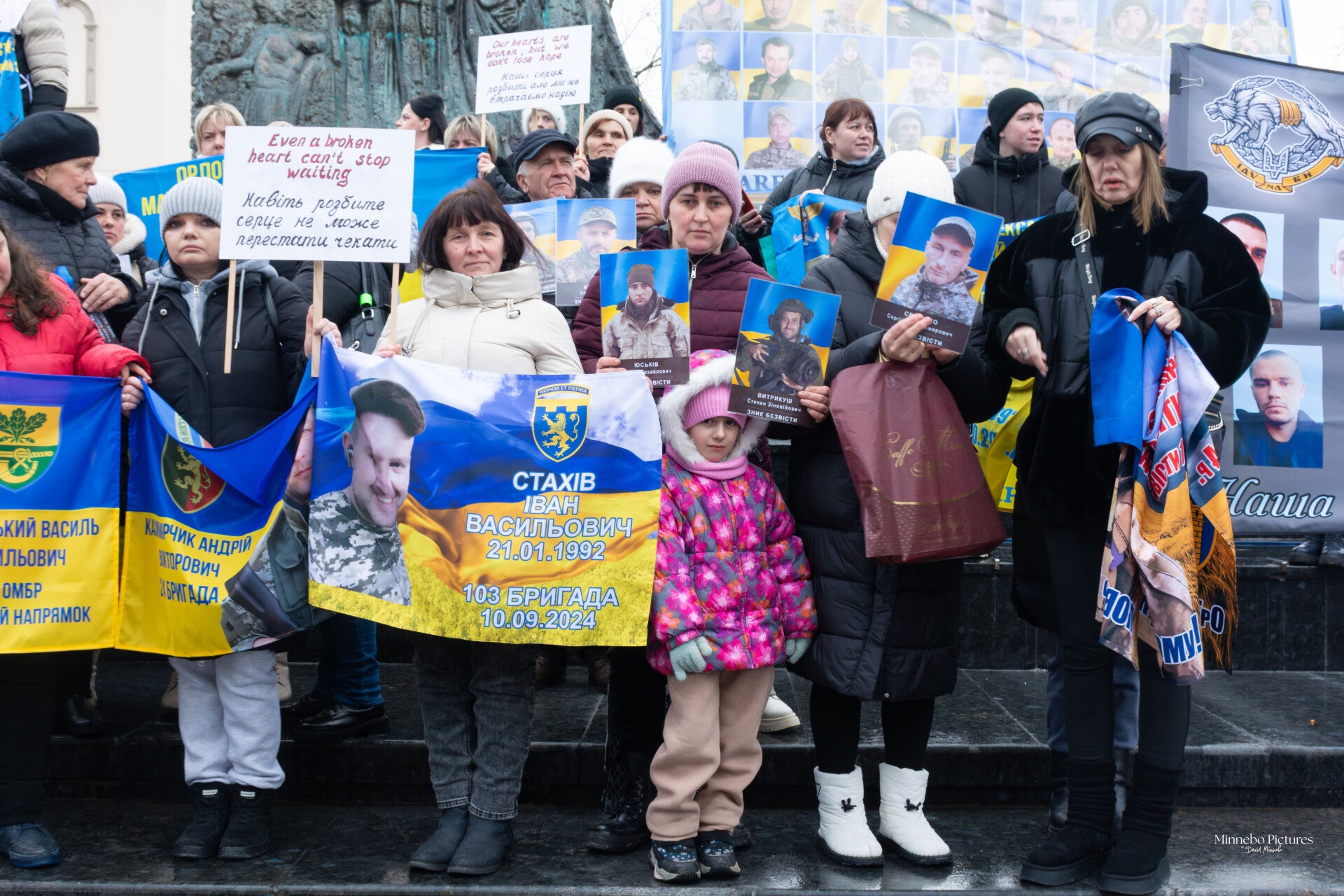 De combinatie van hoop en verdriet is voelbaar in elke blik en elk gebaar. Een kind dat in een vlag gewikkeld staat, een vrouw die een foto vasthoudt alsof ze hem beschermt, families die elkaar ondersteunen. Het is een collectief moment waarin liefde niet verdwijnt, maar zich vastklampt aan de overtuiging dat iemand nog leeft, ergens, en dat zwijgen geen optie is.