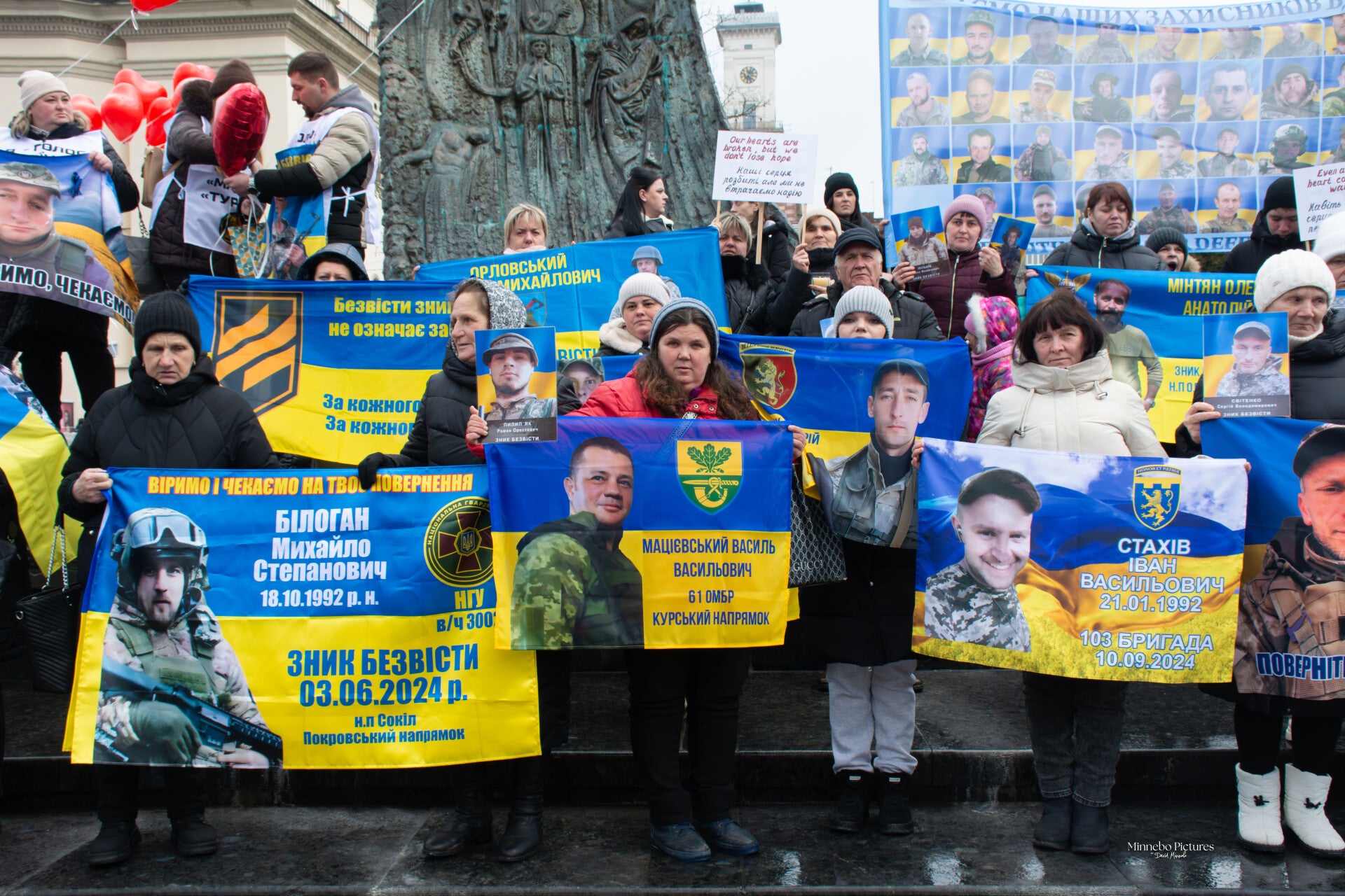 Een herdenking op Valentijnsdag voor geliefden die vermist zijn of nooit zijn teruggekeerd, krijgt een bijzondere, bijna pijnlijke intensiteit. Waar deze dag normaal draait om nabijheid, wordt hier vooral de afwezigheid tastbaar. Families staan samen op straat met foto’s, borden en vlaggen, niet om te vieren, maar om te blijven hopen.