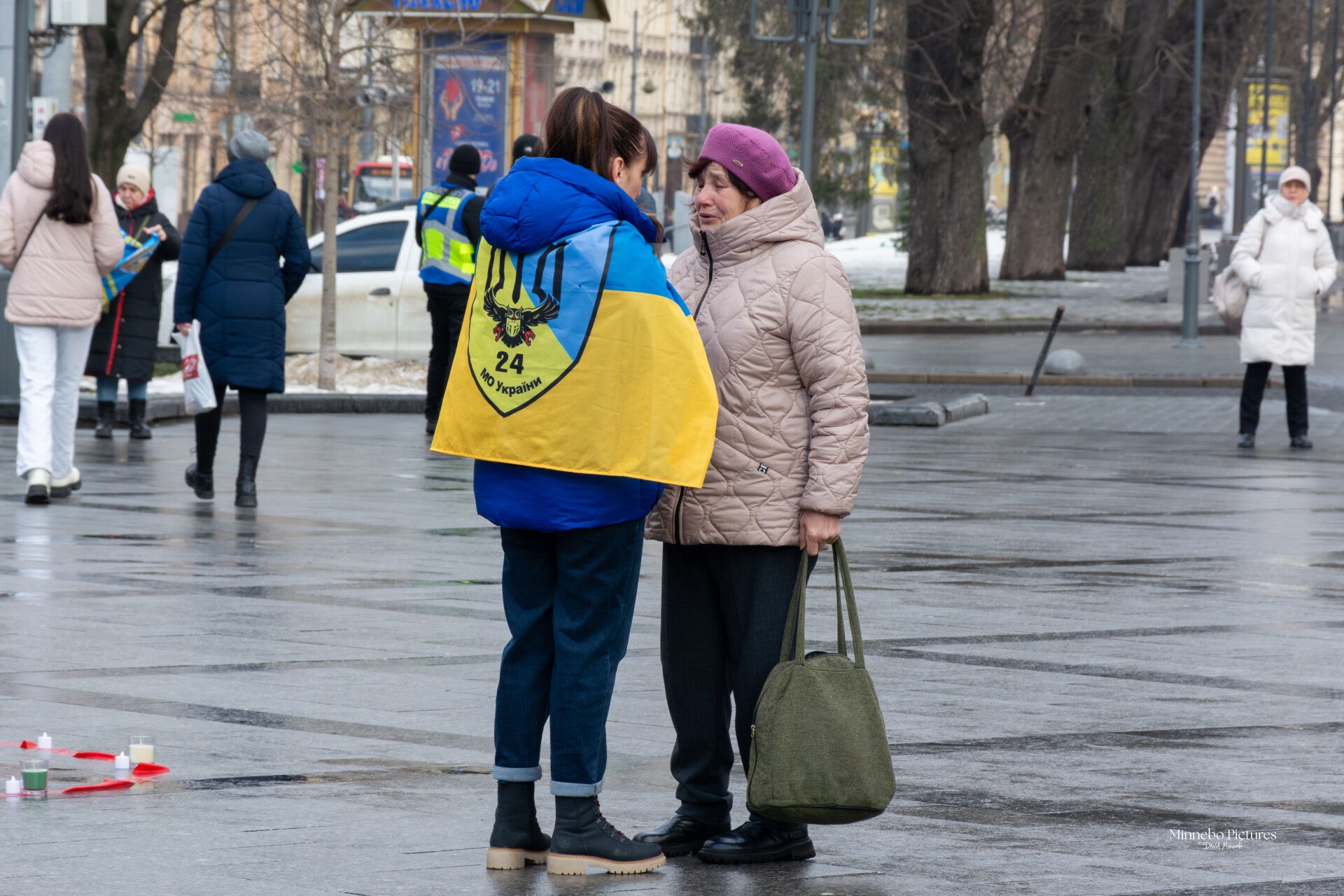 De mensen die hier staan, dragen hun eigen littekens, verliezen en hoop met zich mee. Daardoor wordt het plein niet alleen een plek van actie, maar ook van herinnering en solidariteit.