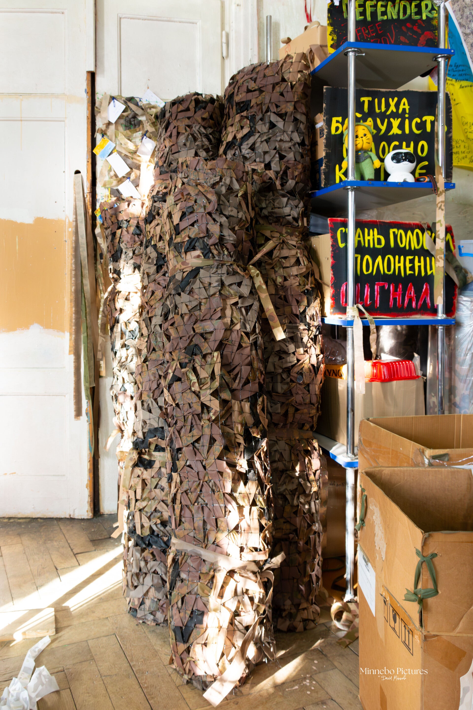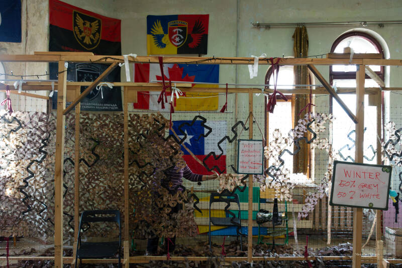 Ze maken camouflagenetten die voertuigen, posities en schuilplaatsen onzichtbaarder maken voor drones en artillerie.