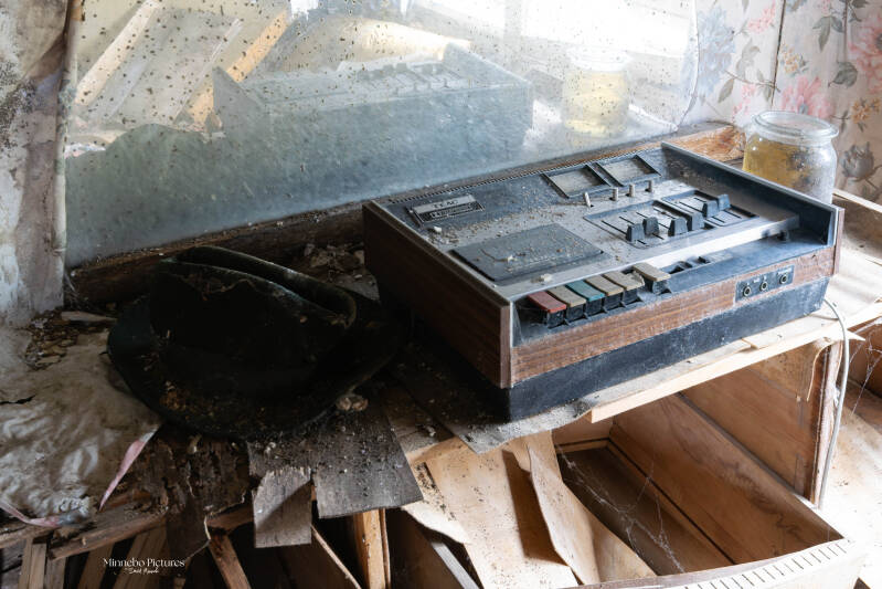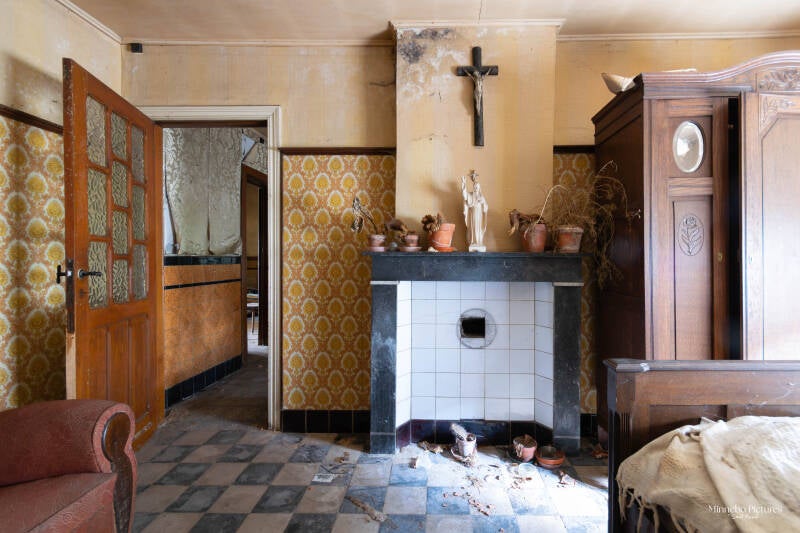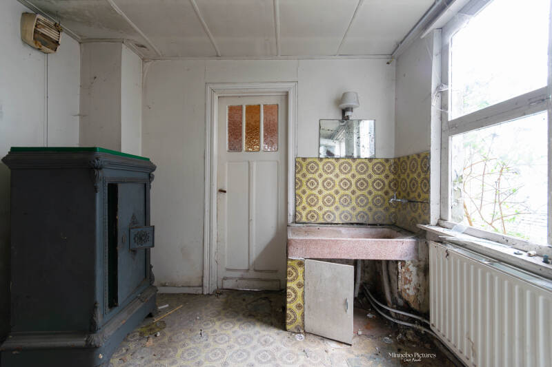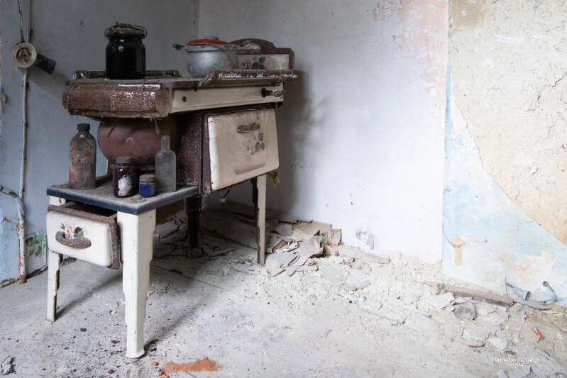 Wat een leuk huisje om te fotograferen hier keer je even terug de tijd in, de oude radio op de kast de computers staan beetje overal en ze zijn dan nog met floppy disk dus al heel oud . Zie die kinderwagen en die Leuvense stoof hoe klein ze is ik zou denken dat het voor mee te spelen is nog nooit gezien zo klein. Hier heeft de natuur het al goed over genomen kasten rotten weg kalk valt van de muren kijk naar de schoen hoe die overgenomen is door de spinnenwebben zo zie je maar dat niks voor eeuwig is als je de natuur zijn gang laat gaan.