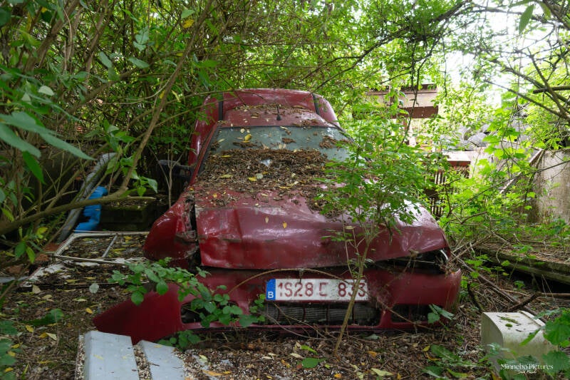 Een verlaten boerderij waar de tijd al even stil staat alles wordt overgenomen door de natuur. Er staat hier zeker nog een grote waarde aan landbouwvoertuigen zie die twee prachtige Minerva jeeps die daar verborgen zijn .