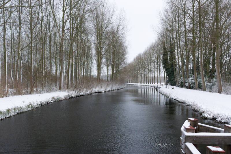 De moervaart van Wachtebeke naar Moerbeke op een winterdag prachtig met die weerspiegeling in het water.